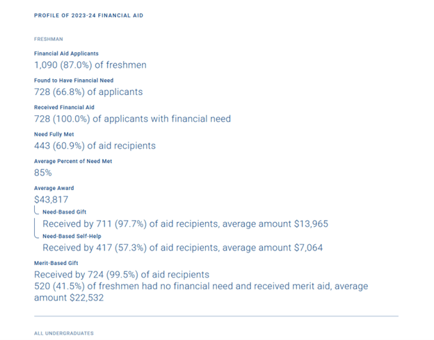 Here’s Gonzaga’s data set from Collegedata, which shows that all students with financial need received a merit award, and that the average merit award for students without financial need was $22,532.